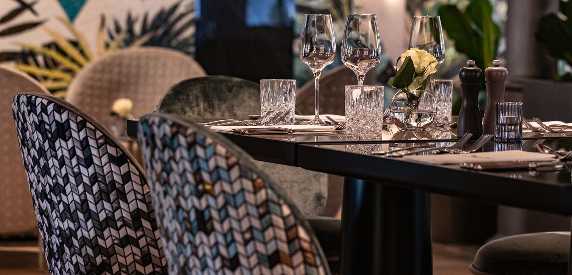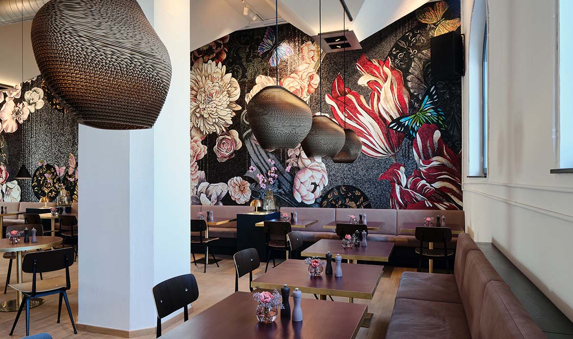 Ein einzigartiges Raumkonzept mit handverlegtem Mosaik, eleganten Sitzbereichen und Urban-Garden-Flair schafft stilvolles Wohlfühlen.